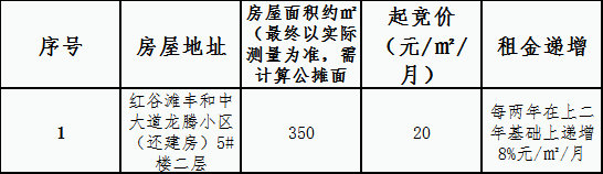三、本次竞拍只报起竞价,房屋每间租金起竞价为:
