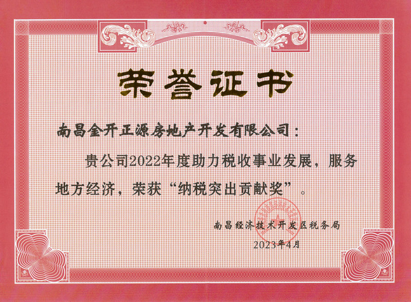 金开资本管理有限公司、南昌金开正源房地产开发有限公司荣获“纳税突出贡献奖”。