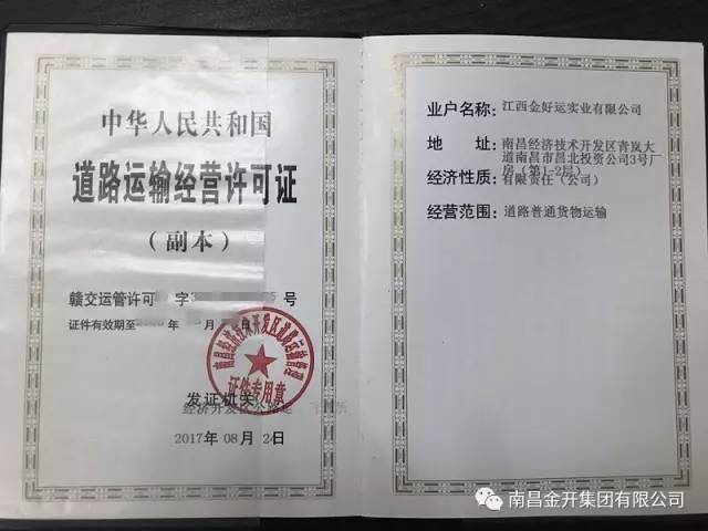 江西金好运实业有限公司道路运输经营许可证的取得,进一步拓展了公司的经营渠道,健全了公司从事道路运输经营的资格,确保了公司道路运输市场规范有序地发展。