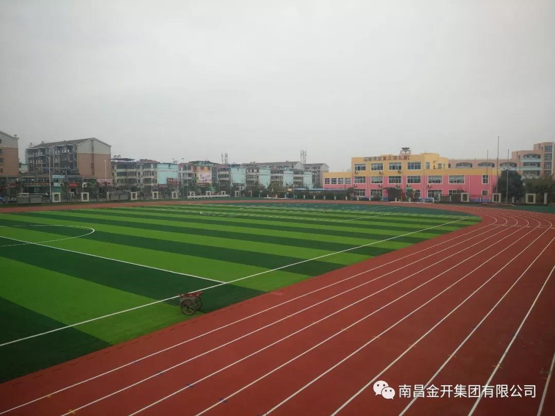 自该工程开工建设以来,金开江南(中国)下属建总公司高管高度重视、统筹兼顾,公司工程建设人员会同施工单位奋力拼搏、积极协作,以精益求精的态度,全力推进工程建设,于2017年12月底完成了运动场跑道及辅助区塑胶摊铺、喷面与画线施工等工作。