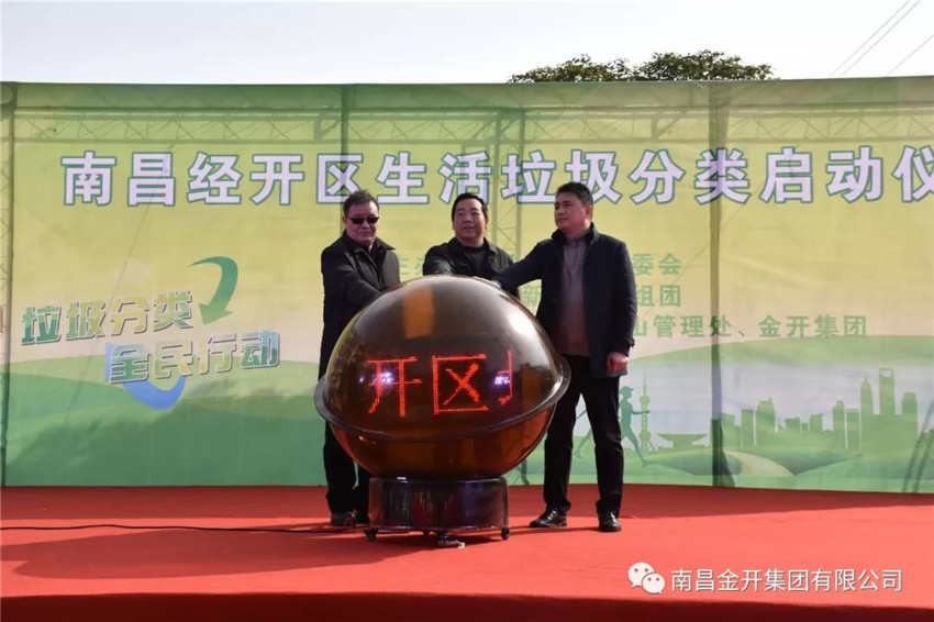 启动仪式上,区城环局副局长胡主存作开幕致辞,他强调:生活垃圾分类是一项长期且重要的工作,功在当代、利在千秋,需要广大群众从每天的小事做起,养成垃圾分类的良好习惯,为美丽中国作出力所能及的贡献。随后,区城环局局长谭钟亮、冠山管理处党委书记李茶根、金开江南(中国)副总经理周云共同启动了“垃圾分类球”,宣布南昌经开区生活垃圾分类在金丰社区正式启动。