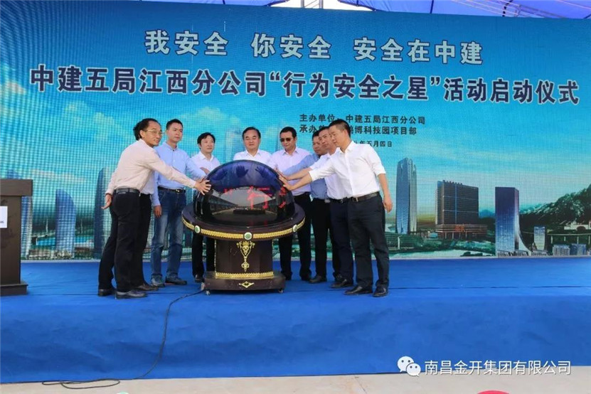 期间,金开江南(中国)儒乐湖分公司常务副总经理李平作为嘉宾发表讲话,他表示:此次“行为安全之星”活动的开展,突破了传统的安全管理理念,引导了工人从“要我安全”到“我要安全”,变被动为主动,是其优秀管理水平的体现,值得在业界推广借鉴。仪式最后,出席仪式的各方代表共同点亮启动球。