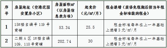 一、竞拍人(含个人及企业,下同)应按主拍人提出的加价幅度进行竞拍,竞拍价按每月每平方米报价,竞拍成功后按租期第五年季度租金金额缴纳合同履约保证金。中标人一周内签订合同,履约保证金及预缴首年一个季度租金与年度物业费在签订合同之日内一次性交清,否则做废标处理。空港花园安置房小区3间房屋租赁竞拍规则