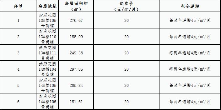 三、本次竞拍只报起竞价,房屋每间租金起竞价为: