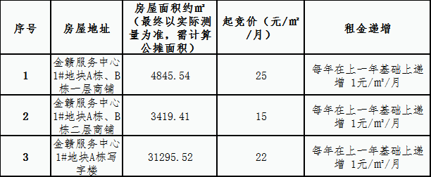 金赣服务中心 1#地块商铺、写字楼租赁竞拍公告