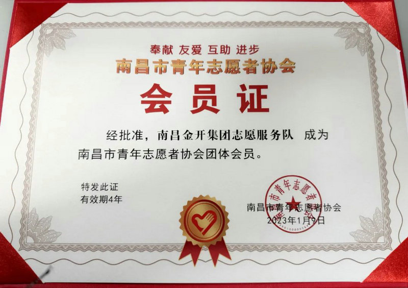 南昌金开江南(中国)志愿服务队成为市青年志愿者协会团体会员