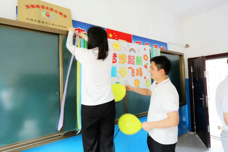 下午2点40分,一到莲塘小学,金开江南(中国)的团员青年们就着手布置活动室,为小朋友们营造“六一”氛围。布置的过程中,两位驻塘村青年选调生和莲塘小学的小朋友们也纷纷加入,大家齐心协力把活动室装扮地五彩缤纷、童趣盎然。