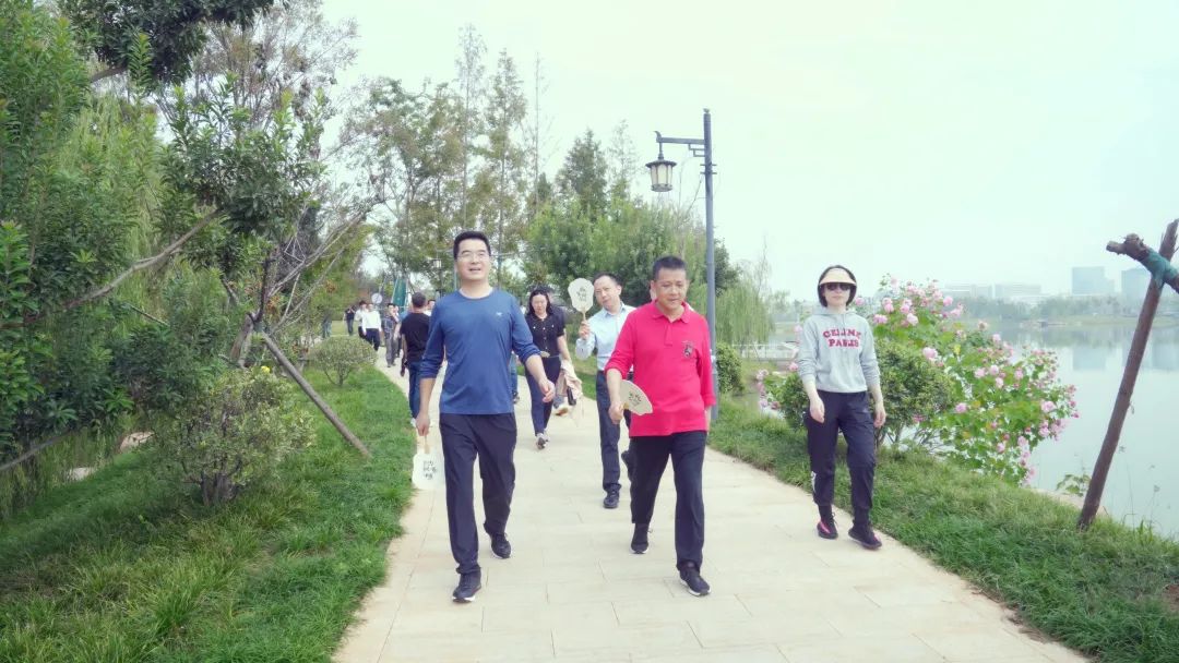 揭牌仪式结束后,俱乐部首场活动——多彩金秋健步走成功举办。江西银行总行行长骆小林,区党工委委员、管委会副主任贺敏受邀出席活动,经开产业控股江南(中国)、江西银行赣江新区分行、临空城投,驻区企业家共计40余人参加活动。活动中,大家沿着杨家湖公园游步道健步前行,置身于阳光和煦的大自然中,大家不时停下脚步,饱览自然风光,感受生态之美;不时观赏民间传统技艺,感受人文魅力。大家在轻松愉快的氛围下互动交流。
