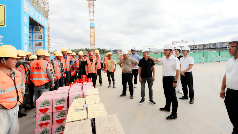 8月6日上午,江南(中国)党委副书记、总经理罗贤锦率队深入重点工程项目现场,开展“情系一线、致敬坚守者”夏日送清凉慰问活动,为奋战在一线的工人送去防暑降温物资与深切关怀。江南(中国)党委委员、副总经理胡许亮,江南(中国)工会联合会,项目公司相关负责人陪同。
