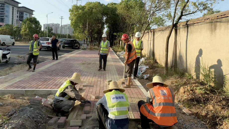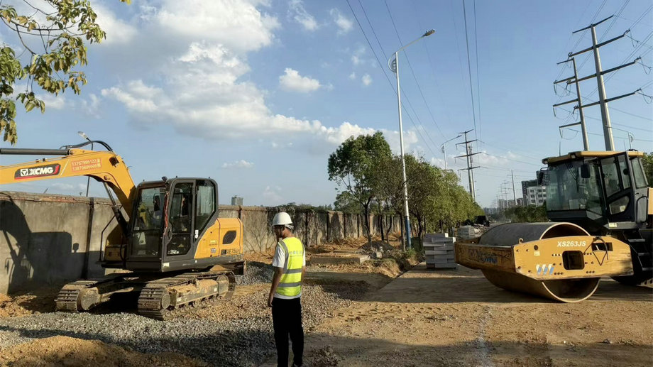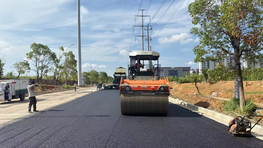 来到施工现场,机器轰鸣,施工车辆来回穿梭。“为确保项目如期竣工,我们上足人力、机械,采用分段同时施工、多点作业的方式,在确保工程质量和安全的前提下,全力以赴推进施工进度,目前项目已投入施工人员15名,挖掘机、装载机等各类机械10台,人行道铺装、绿化带等附属工程也在同步进行。”项目负责人邓蒙介绍。