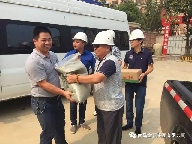 7月19日金开江南(中国)副总经理、工会主席周云同志带领慰问小组走访了各子公司“保文保卫”及其他高温作业现场,了解一线职工的工作情况,并为一线职工们送上毛巾、草帽、西瓜等防暑降温物品,转达了江南(中国)对他们的关怀。