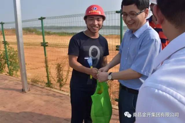 最后,一行人冒着高温天气来到儒乐湖项目一线进行慰问,为奋战在项目一线的员工发放防暑慰问品。熊书记表示,希望所有一线员工面对高温天气,要统筹安排好作息时间,打好时间间隙战,注意人身安全,保证文明安全施工。