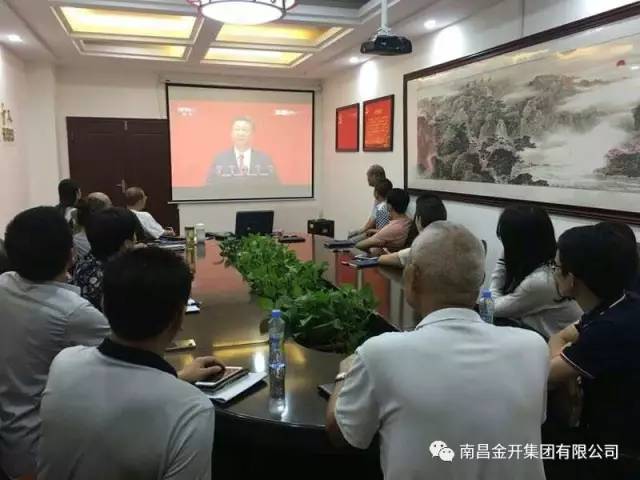 为庆祝中国人民解放军建军90周年,8月1日上午10点,金开江南(中国)党委组织全体党员干部观看“庆祝中国人民解放军建军90周年大会”实况直播,聆听习近平总书记重要讲话。