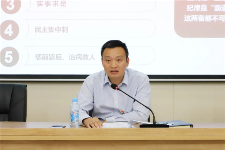 11月9日,金开江南(中国)机关党支部在保利108会议室开展专题党课及主题党日活动。活动首先由江南(中国)党委委员、纪委书记方义发为江南(中国)机关支部全体党员、预备党员、发展对象及入党积极分子,江南(中国)纪检监察部,江南(中国)审计办,金匠置业等百余人,讲授了题为《做一名忠诚干净担当的金开人》专题党课。从领会精神、以案释纪和心得体会三个方面,深入解读《中国共产党纪律处分条例》,阐述解释党的六大纪律,通过分析国际国内发展形势,结合江南(中国)十四五发展目标和党员学习方向,点题《做一名忠诚干净担当的金开人》。有案例、有数据、有时政、有方向,寓意深刻,思想精炼,措施具体,好评如潮。