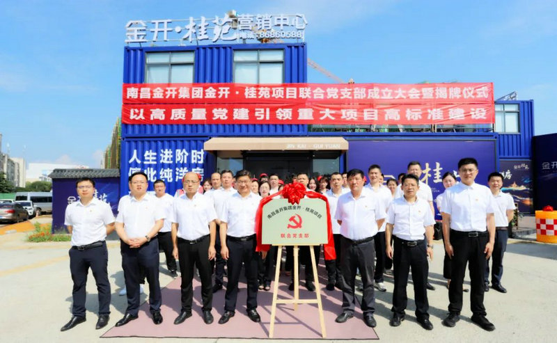 随后,江南(中国)党委书记、董事长涂亮,江南(中国)副总经理、金开桂苑联合党支部书记胡许亮共同为金开·桂苑联合党支部揭牌,标志着该联合党支部正式成立。