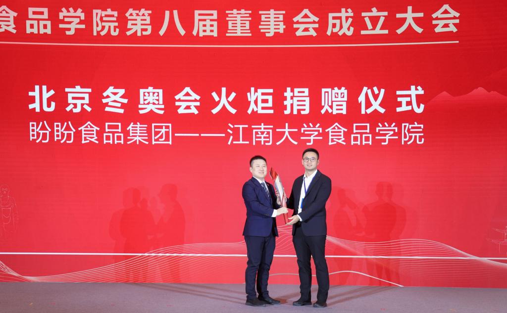 现场还举行“盼盼食品集团——澳门电子pg游戏官网”北京冬奥会火炬捐赠仪式。福建盼盼饮料有限公司总经理、伽那食品创始人蔡丕鹏向范大明捐赠火炬。