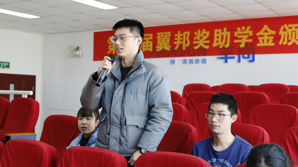 活动伊始,魏珍吉代表学院致辞。他在致辞中对翼邦公司表示感谢,向获奖助的同学们表示祝贺。他指出,学院高度重视产教融合,充分挖掘社会资源,与企业共同培育一流人才。他希望同学向优秀校友学习,心存感恩,以良好的学业成绩和优秀的科研成果回馈社会。