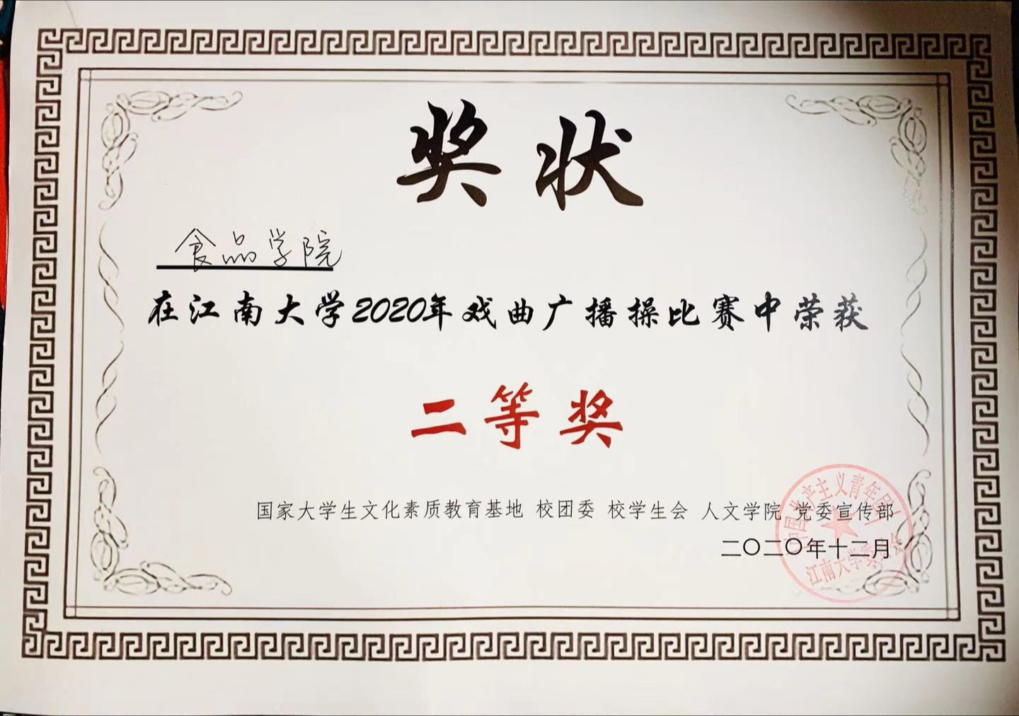 获奖证书