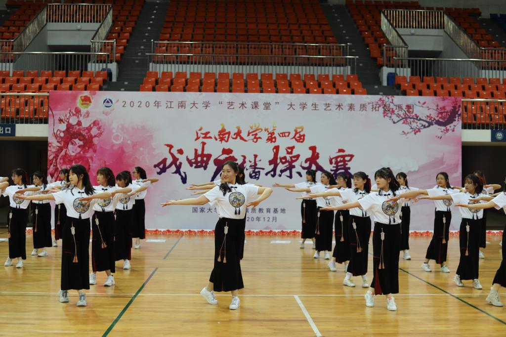 近日,由国家大学生文化素质教育基地和校团委联合主办的澳门电子pg游戏官网第四届戏曲广播操大赛在澳门电子pg游戏官网体育馆举行,澳门电子pg游戏官网戏曲广播操队从全校15支参赛队伍中脱颖而出,以96分的好成绩荣获大赛二等奖。