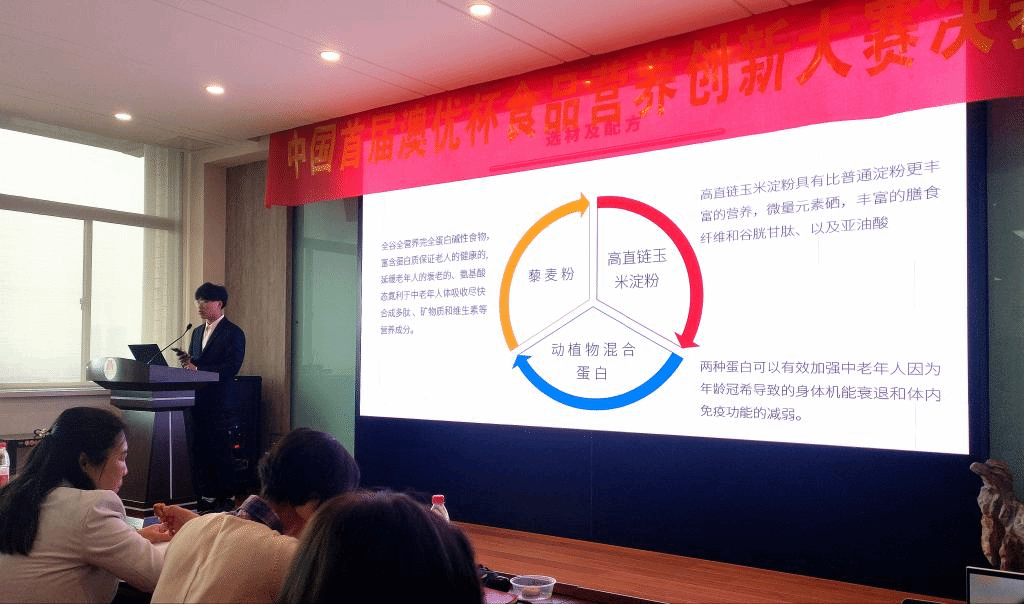 最后,澳优食品研究院营养品开发主管荣智兴进行总结发言。他对本次大赛给予了高度肯定,他认为校企合作可以加强企业与高校的产学研结合,希望与澳门电子pg游戏官网保持长期合作,为行业发展添砖加瓦。