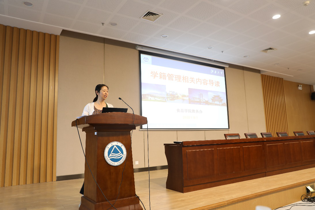 随后,朱雅东介绍了学院人才培养方案,从入学与注册,课程考核与成绩记载,选课与重修,休学、复学,退学,毕业、结业与肄业等六个方面对学籍管理办法进行了详细的解读。