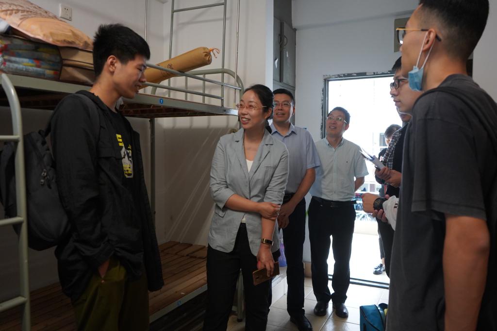 学院党委书记傅莉莉、副书记魏珍吉、副院长王立等第一时间前往宿舍园区看望新生。因为疫情缘故,新生都是独自入校报到,学院领导们特别关心他们的适应情况、报到是否顺利完成等,仔细查看了基础设施和环境卫生,深入寝室与新生展开亲切的交流。