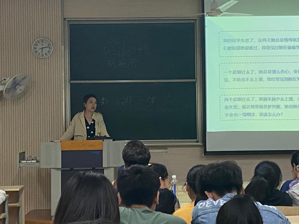 5月7日晚,澳门电子pg游戏官网在二教2C210面向全体2020级本科宿舍长开展了心理健康教育培训。活动由澳门电子pg游戏官网心理辅导员胡晓丹主讲,2020级77名宿舍长参加了培训。
