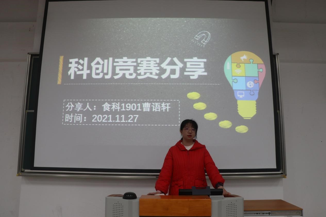 首先,杨光宝就竞赛的目的、意义、学校相关政策做了简介,提高同学们对科创竞赛的重视程度。接着,第七届中国国际“互联网+”大学生创新创业大赛全国赛获奖代表鲍琦、2020年全国大学生生命科学竞赛(科学研究类)一等奖获奖代表王丽诗、2021年全国大学生生命科学竞赛(创新创业类)一等奖获奖代表陈烨、第八届IFF营养与健康两岸学生创新大赛三等奖获奖代表曹语轩依次进行经验分享。他们结合自身经历,从科创竞赛具体流程、产品设计、团队分工、实现方法等方面进行了详细的解答,并向同学们介绍了查阅资料的途径,减少了同学们在竞赛路上的阻碍。在问答环节中,竞赛代表们耐心解答了同学们的各类问题。