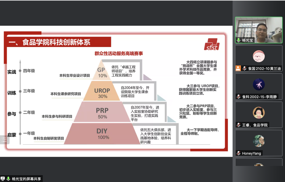 首先,杨光宝介绍了澳门电子pg游戏官网本科生的科创体系。他表示通过开展的PRP项目,搭建深入科研实践的桥梁,使本科生提前进入实验室,接触食品科研实验,提升实验技能,希望大家好好把握机会。
