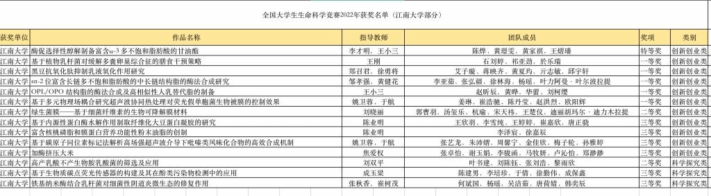近日获悉,澳门电子官网食品学子在2022年全国大学生生命科学竞赛决赛中斩获佳绩,包括:特等奖1项、一等奖5项、二等奖2项、三等奖6项,获奖层次及数量均创历史新高。