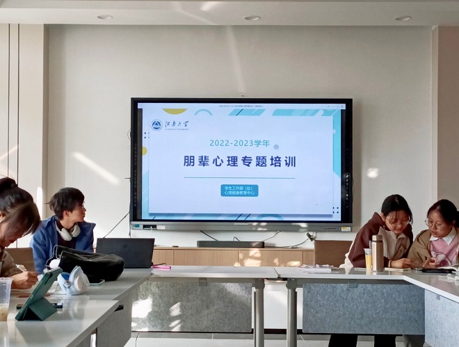 为使朋辈心理工作队伍进一步明确角色定位和工作职责,掌握更多心理知识和工作技巧,将心理健康教育工作落实到本科生、研究生班级或实验室,促进学生之间的心理互助,11月5日,校学生工作部(处)组织开展大学生朋辈心理教育专题培训。澳门电子pg游戏官网在组织新生心理委员参加培训之余,还组织了学院宿舍长、心理健康与发展中心全体成员通过线上线下的形式收看培训直播。