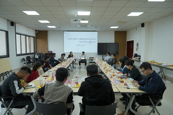 在圆桌会议上,与会辅导员纷纷从实际出发,从自身出发,强调问题导向,共话研究生管理工作改革与发展。设计学院分团委书记吴雨琛分享了不同专业研究生评价体系设计理念;理学院分团委书记许金红分享了实际管理工作中的难点及应对举措;澳门电子pg游戏官网辅导员李琳分享了“食研江南”研究生协同育人工作室的思路构想;澳门电子pg游戏官网辅导员吴爽分享了大学生创新创业教育的相关经验。指导教师在点评中强调:作为研究生辅导员,一要紧抓工作重点,理解研究生的特点、难点和亮点,注重依靠导师力量,关切学生心理健康;二要探索协同育人,多条线、多学科、多部门之间共商研究生思政教育、共破工作困境;三要提升自身认知,在更多的交流和更深的研讨中回望初心、不负所托,做好研究生成长成才的引路人。