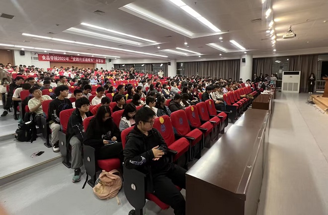 澳门电子pg游戏官网研支团宣讲人杨晗婕向同学们讲述了他们的故事,300余名学生,10余个乡镇的走访,58家,72次的入户......他们用实际行动诠释了食代青年的担当,心之所向,方能远行。