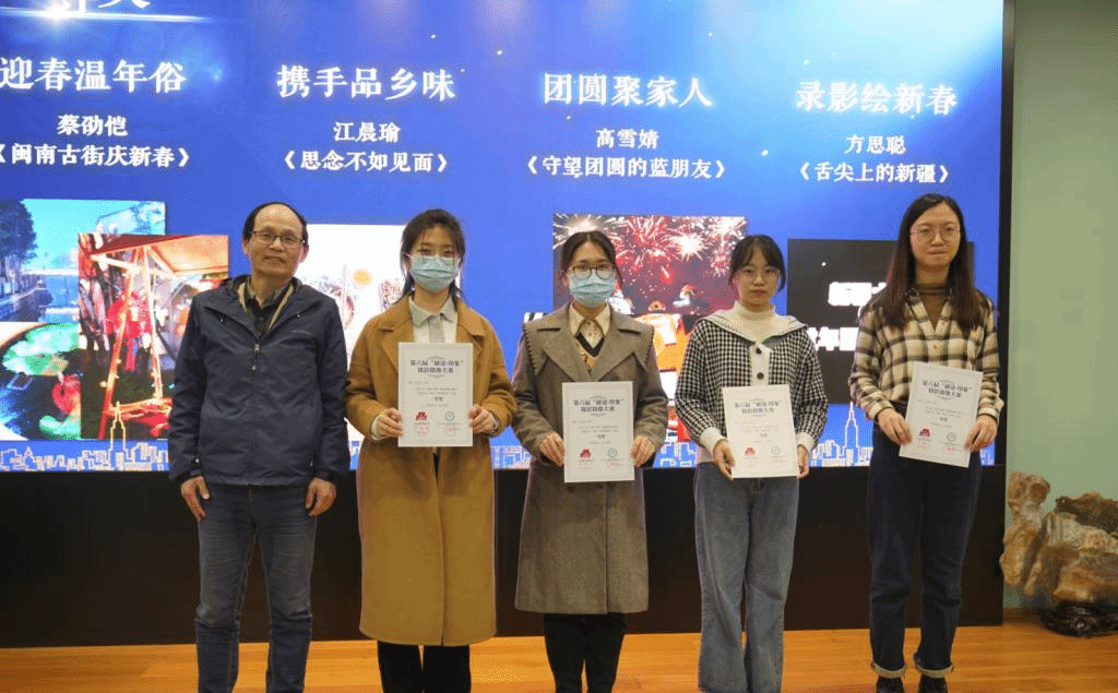 活动中还进行了学院第六届“研途·印象”摄影摄像大赛颁奖仪式,胡奕、李琳和李金杰老师为获奖同学颁发奖状并合影留念。