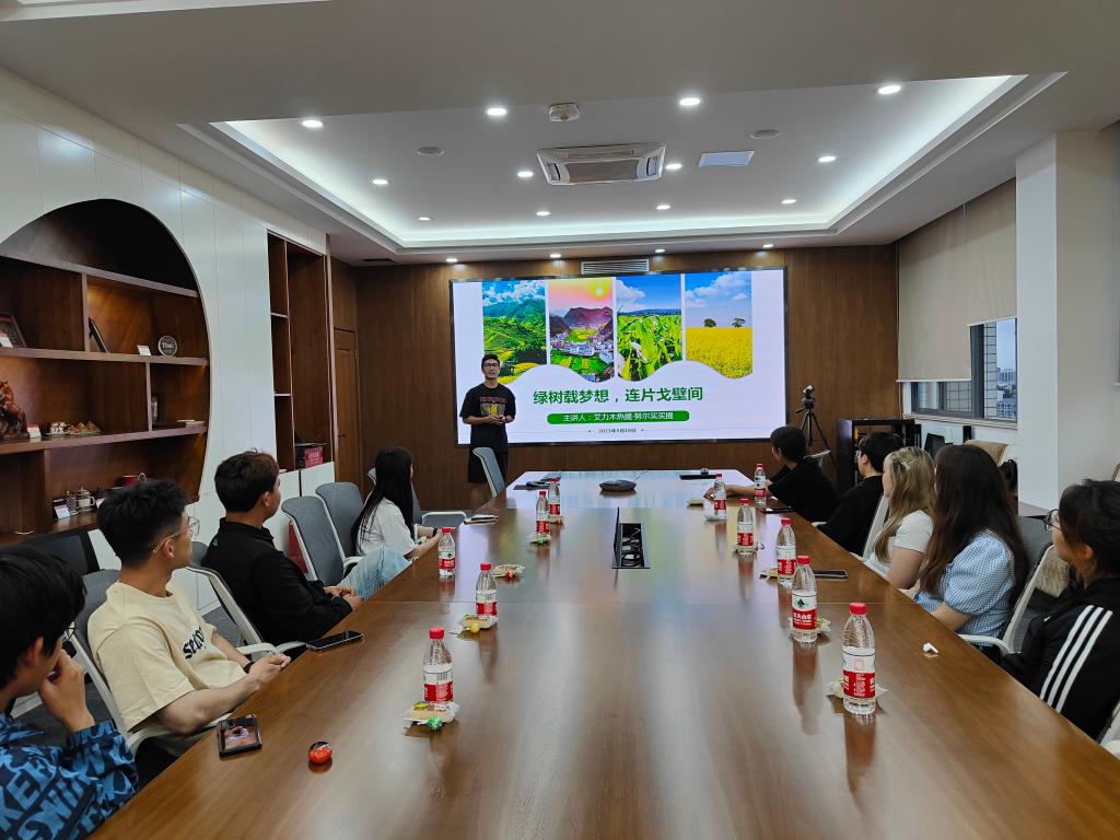 少数民族学生代表、食质2001班班长艾力木热提·努尔买买提首先以《绿树载梦想,连片戈壁间》为题讲授了一堂微团课。他以农垦精神的历史及背景为切入点,结合中国式现代化进程,展现了食品青年为助力乡村振兴贡献的青春力量。他还分享了在江南的学习、工作、竞赛、生活等多方面经验,指出“兴趣是学习的方向”“良好的心态最重要”。