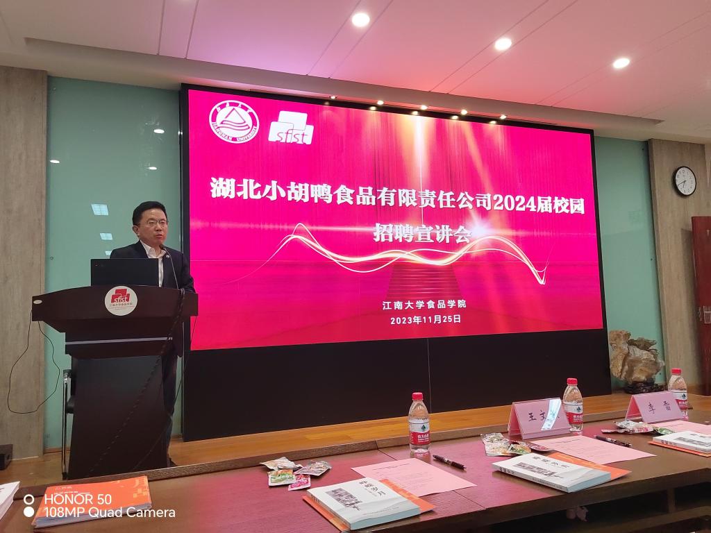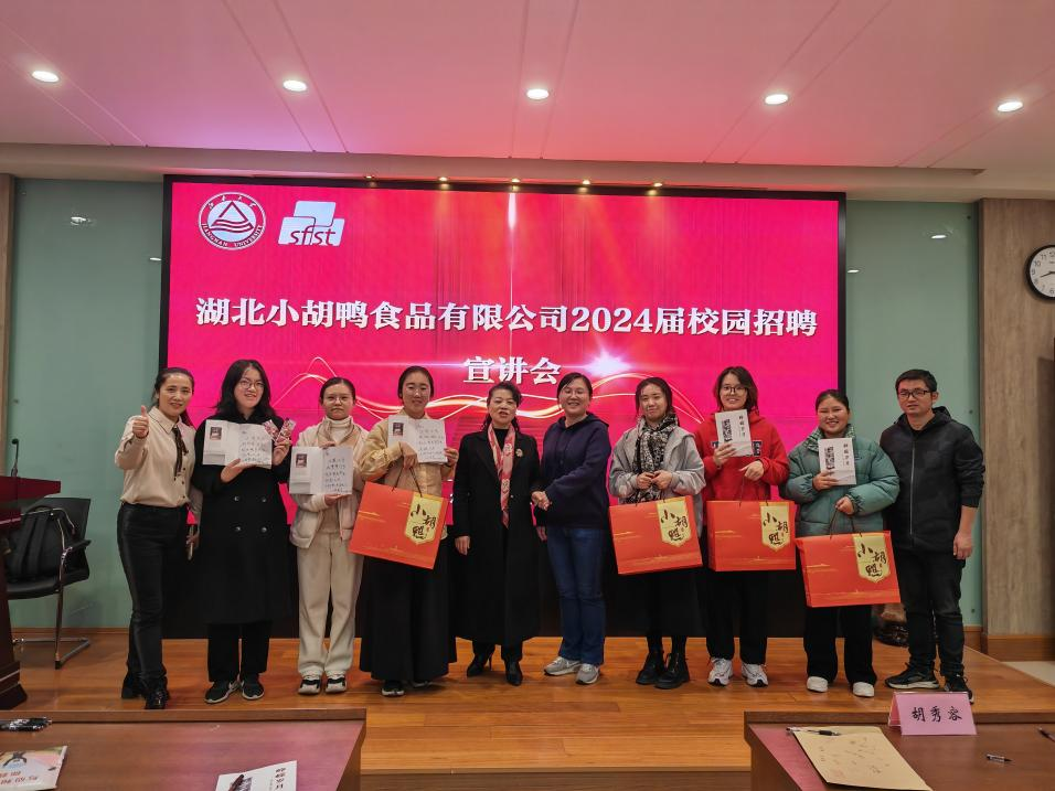 11月25日晚,湖北小胡鸭食品有限责任公司校园招聘宣讲会在我院顺利举办。小胡鸭公司董事长、创始人胡秀容,董事长助理陈思才,生产厂长王新平,办公室主任陈海艳等企业嘉宾;澳门电子pg游戏官网党委副书记、副院长李雷,就业辅导员王文燕及120余名毕业生参与宣讲活动。