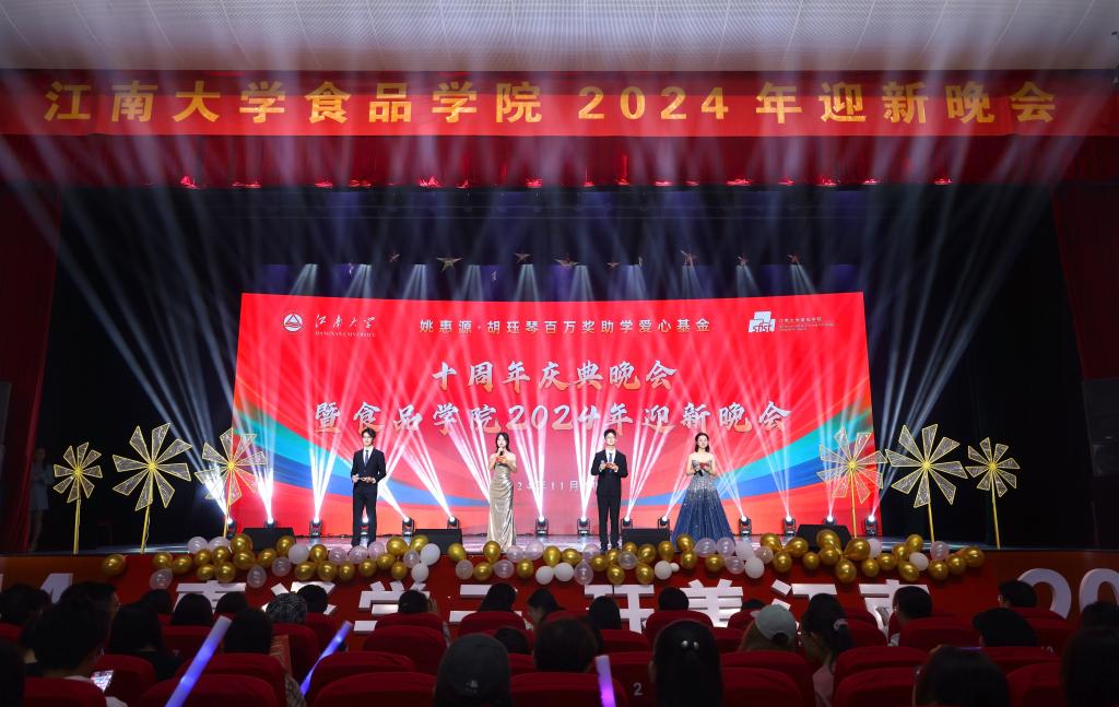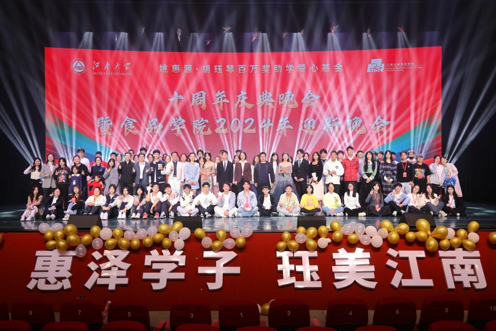 光影交错、声形交织。晚会以“姚惠源·胡珏琴百万奖助学爱心基金”十周年庆典为主题,颂扬一代代江南食品人传承不息的奋斗精神和大爱之光,用最真挚的爱引领2024级新生沉淀过往、迎来新光,持续追寻理想的彼岸、向着最初的梦想。