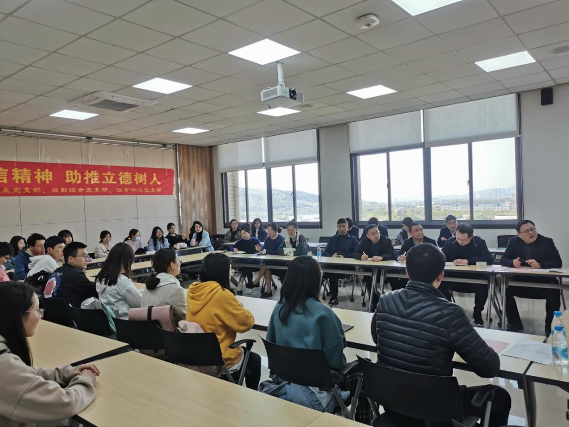 4月9日,澳门电子pg游戏官网本科生第三党支部与后勤管理处综合党支部在澳门电子pg游戏官网D916举行了主题为“共学贺信精神 助推立德树人”的支部共建活动。后勤管理处综合党支部书记俞德海、饮食中心党支部委员徐阿毛、食品本科生第三党支部书记刘鑫以及三个支部41名党员同志参加了活动。