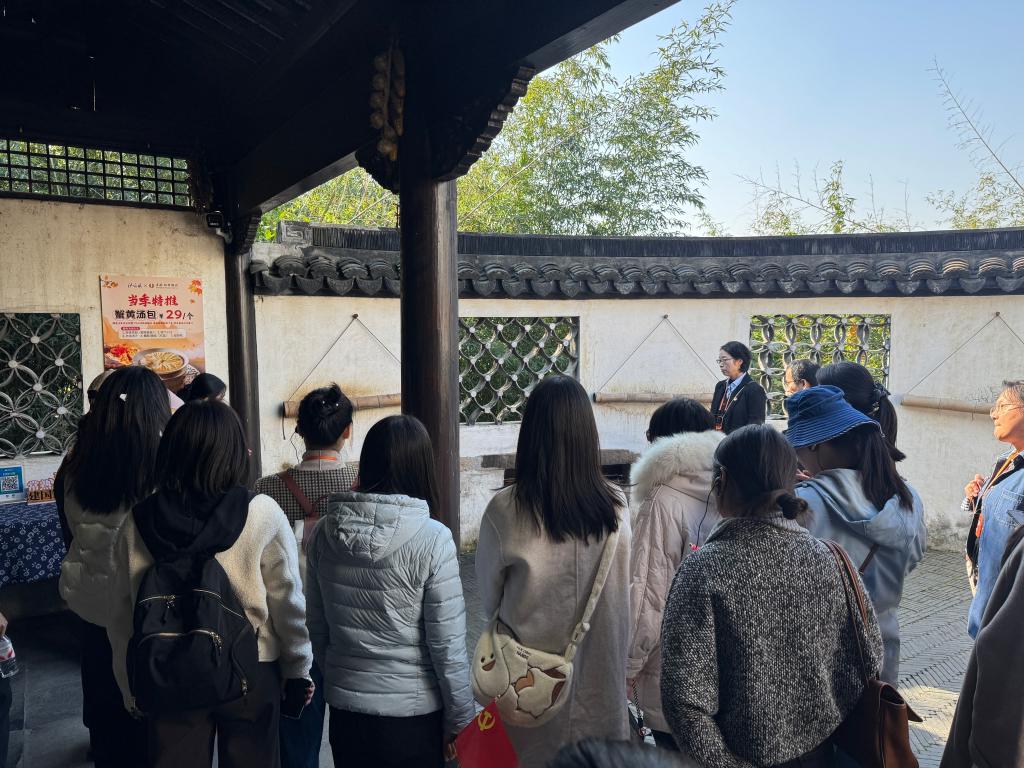 随后,大家前往横泾老街,实地参观刁家大院、阿庆嫂茶馆等红色旧址。在刁家大院,通过实物陈列与场景还原,同志们了解到抗日战争时期当地不同群体的生活状态与革命背景,深刻体会到革命胜利的来之不易;走进阿庆嫂茶馆,“垒起七星灶,铜壶煮三江”的经典场景仿佛重现,大家围绕“阿庆嫂”这一艺术形象背后的群众智慧与革命担当展开讨论,进一步理解了“军民团结、众志成城”的红色基因内核。