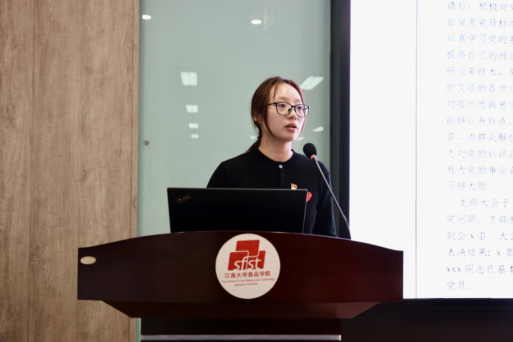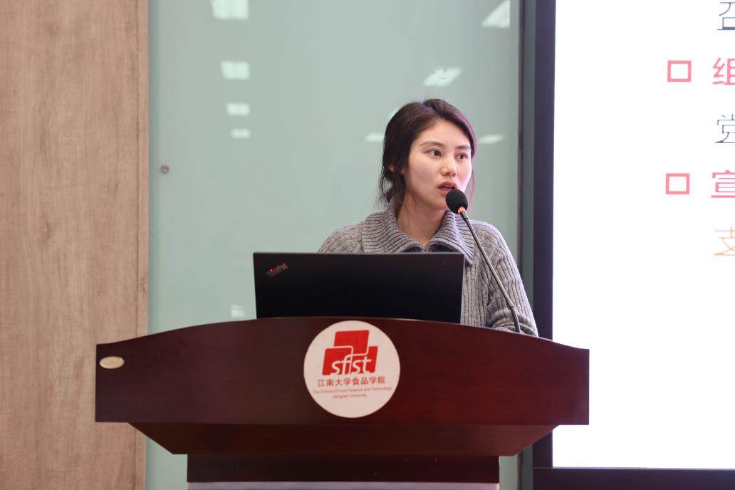 会上,傅莉莉做动员讲话。她充分肯定学生党支部委员作为学院最年轻、最具活力的骨干力量,在推动基层党建和学院发展中发挥的重要作用。围绕提升学生党建工作质量,她对全体支委提出三点殷切希望:一是要深化思想认识,锚定职责定位。要求大家立足食品学科特色与国家行业发展需求,自觉将党建工作与专业学习、科研实践、青年使命担当深度融合,使党支部真正成为凝聚青年、服务发展、深受信赖的坚强堡垒。二是要严守工作规范,筑牢建设根基。强调必须严格执行“三会一课”、组织生活会等基本制度,在党员发展、活动开展等环节规范操作,以标准化建设驱动支部工作提质增效。三是要强化责任担当,发挥表率作用。勉励大家平衡好党务工作与学业科研,主动谋划差异化、特色化的支部活动,在学风引领、志愿服务、科技创新等各个方面走在前列、作出示范,以实际行动诠释党员初心,推动支部工作做实做活、富有成效。
