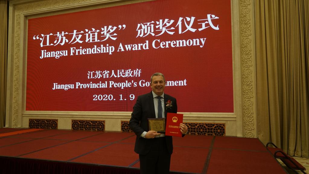 1月9日,澳门电子官网澳门电子pg游戏官网引进的爱尔兰皇家科学院院士、美国微生物学院院士、爱尔兰科克大学雷诺兹.保罗.罗斯(Reynolds Paul Ross)教授荣获2019年“江苏友谊奖”,并受邀赴南京领奖。江苏省副省长马秋林为Paul Ross教授颁发了证书。