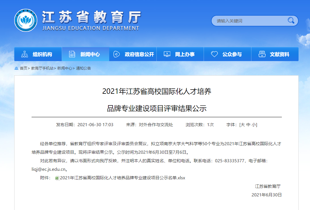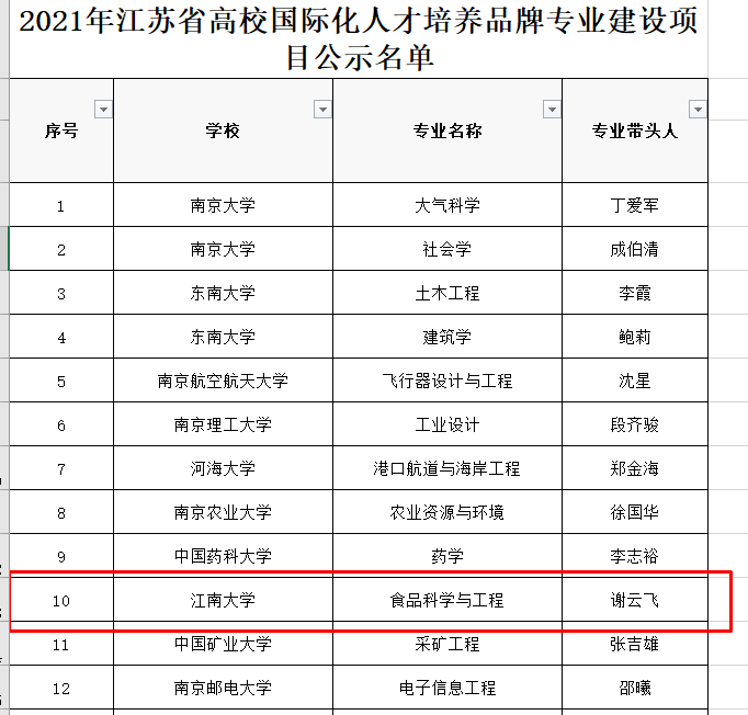 近日,江苏省教育厅公布了2021年江苏省“十四五”高校国际化人才培养品牌专业建设项目名单,我院食品科学与工程专业获首批立项,项目建设周期为4年。