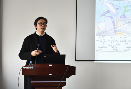 报告伊始,尹处长指出糖类物质在生物体内的信号传导、生物识别、免疫应答等方面起着关键作用,人类多种重大疾病与糖类物质的异常表达密切相关,并对哺乳动物及细菌中的糖类物质结构进行了详细的分析。接着,尹处长提出虽然糖类物质的生物学功能不断被揭示,但糖生物医药研究的广度和深度仍远远不足,存在的主要技术瓶颈是纯品糖类物质获取困难、糖链生物医药功能认识不足,面临“巧妇难为无米之炊”的卡脖子问题。即使糖类物质的研究道路面临重重阻碍,尹处长仍鼓励同学们能够多一些尝试,积极加入糖类物质的开拓领域中。最后,尹处长结合自身经历,鼓励同学们无论是在学习或是人生中要有目标、有梦想、有行动,要会做事、做成事、有突破性地做成事,要学会成长、突破、改变,成就圆满的自我。