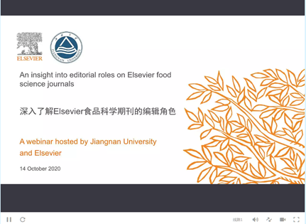 2020年10月14日,爱思唯尔出版社联合澳门电子pg游戏官网共同主办“爱思唯尔食品科学期刊编辑角色的洞察剖析”网络研讨会,就深入了解期刊编辑角色,如何从审稿人、编委会成员成长为编辑进行了探讨。会议由爱思唯尔高级出版商Jennifer Wood和澳门电子pg游戏官网副院长谢云飞教授共同主持,澳门电子pg游戏官网食品科学与技术国家重点实验室江波教授、周鹏教授,澳门电子pg游戏官网钟芳教授三位嘉宾分享了他们作为编辑的经验、建议及相关信息,以帮助科研人员进一步了解科学期刊编辑的工作情况。