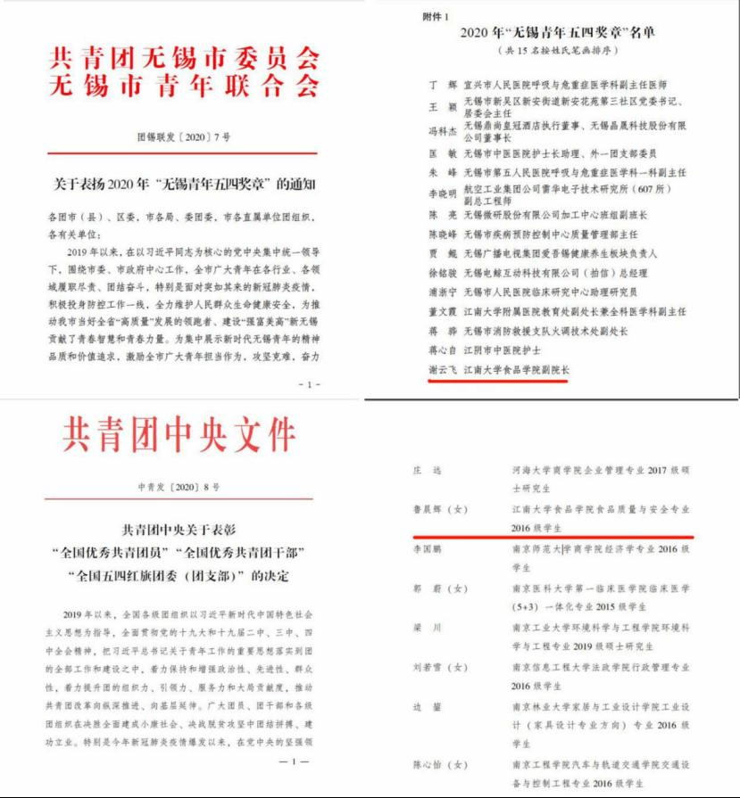 澳门电子pg游戏官网谢云飞副院长获评“无锡五四青年奖章”,鲁晨辉获评“全国优秀共青团员”