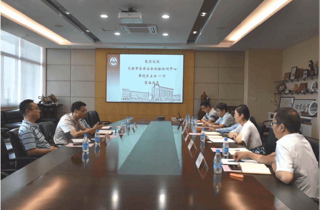 2020年8月21号,无锡市食品安全检验检测中心主任黄晓东、副主任冯永巍、副主任周宇一行来访我院,澳门电子pg游戏官网院长刘元法,党委书记傅莉莉、国家功能食品工程技术研究中心副主任王周平、澳门电子pg游戏官网地方服务和合作办公室副主任王恒、分析食品安全学研究所严秀平教授和沈晓芳教授等人参加了会谈。
