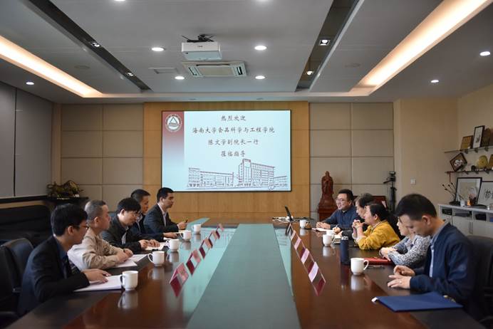 2020年11月2号,海南大学食品科学与工程学院陈文学副院长、李武副院长一行五人来访我院,澳门电子pg游戏官网副院长孙秀兰,教学中心主任卢蓉蓉等人参加了会谈。