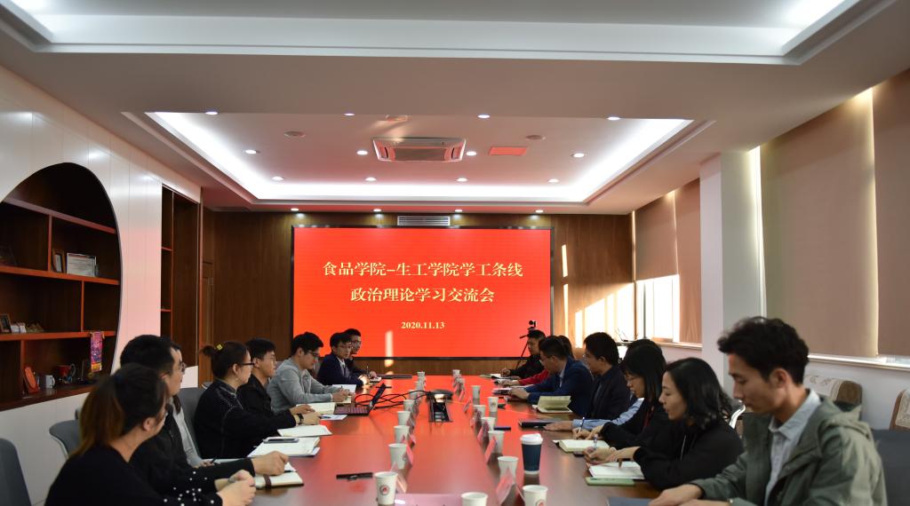 为加强学院间交流,提升学工队伍政治理论水平,11月13日下午,澳门电子pg游戏官网与生物工程学院在食品楼D925举行学工条线政治理论学习交流会。会议邀请到马克思主义学院副院长侯勇作报告,生物工程学院党委副书记周云龙、澳门电子pg游戏官网党委副书记魏珍吉,澳门电子pg游戏官网与生物工程学院全体专职辅导员参加了交流会。