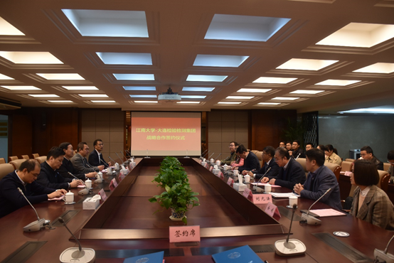 11月27日,大连市检验检测集团有限公司与澳门电子pg游戏官网战略合作协议签字仪式在澳门电子官网行政楼B305会议室举行。大连市人民政府副市长张志宏,中国工程院院士、澳门电子pg游戏官网校长陈卫,大连检验检测集团党委书记兼董事长李强,校产业技术研究院院长刘龙,澳门电子pg游戏官网院长刘元法,国家功能食品工程技术研究中心副主任/澳门电子pg游戏官网食品质量与安全研究中心主任王周平,大连检验检测集团食品研究院负责人谢涛等专家及领导共同出席签约仪式,会议由校长助理、宜兴江阴校区建设与管理委员会常务副主任张光生主持。