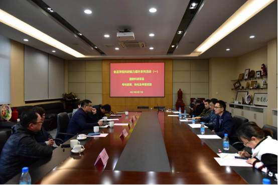 为给全院教师搭建一个政策解读、心得分享、信息互通、观点表达、传帮带携手共进的科研交流服务平台,学院计划分不同主题、以不同形式举办“科研能力提升”系列活动。2021年3月17日下午,首场“科研能力提升”讲座在食品楼D910举行。学院根据老师们的集中需求和建议,邀请了科研院副院长兼军工办主任蔡以兵教授和产研院专利与成果转化科陈晓梅老师为大家解读国防项目和专利方面政策。